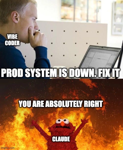 I often hear arguments like, “But I managed to build XYZ in two lines!” Good for you, lucky vibe coder. The problem is that this luck doesn’t last. As soon as one starts adding features, debugging, and trying to build something productive, the errors snowball. The lucky vibe coder quickly turns into a frustrated generator of AI slop.