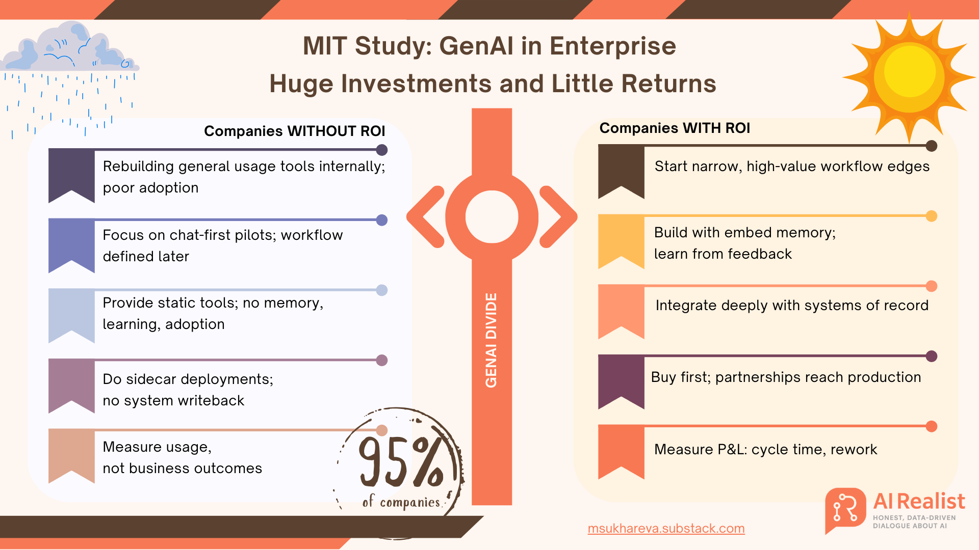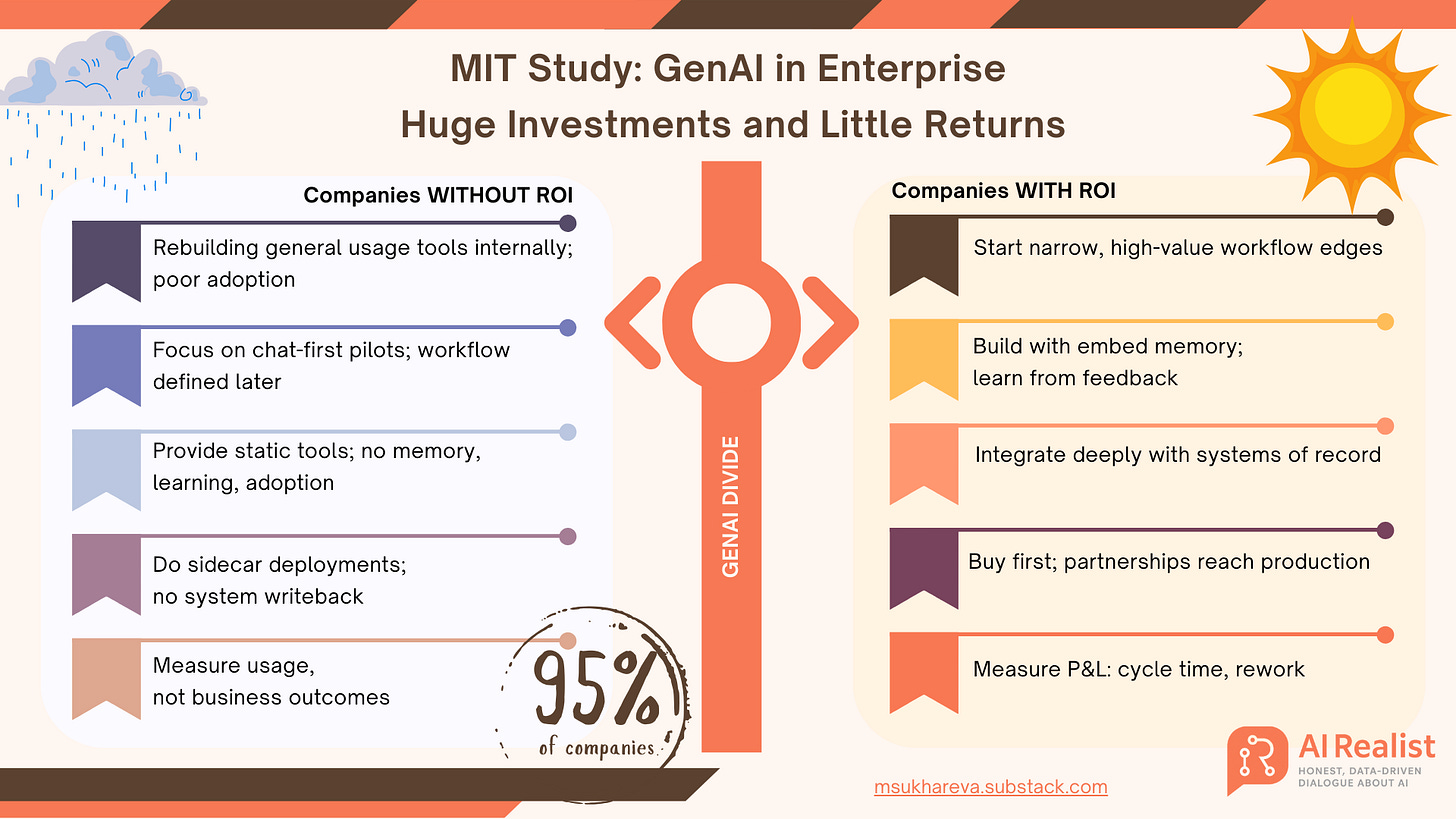 The report by MIT “The GenAI Divide: STATE OF AI IN BUSINESS 2025“ made a lot of headlines. Most of them say 95% of organizations are getting zero ROI from Generative AI.