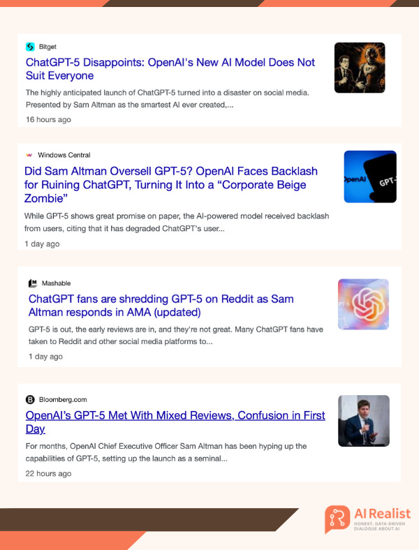 100% confirmed: GPT-5 scored 100% on AIME, yet fails on basic math (see the post linked above). While it surpassed many other benchmarks, the launch has still been met with massive disappointment from users. Many report barely noticing any improvement, and some are even demanding the return of the old models: