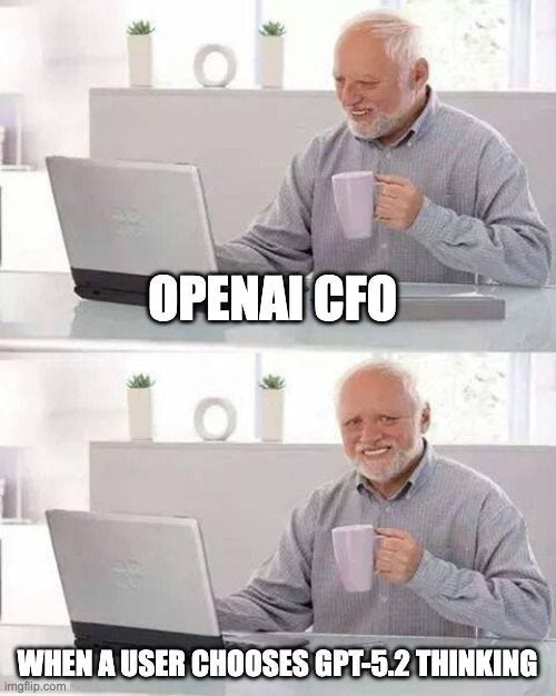That likely makes GPT-5.2 running at a big loss at the high-reasoning settings.