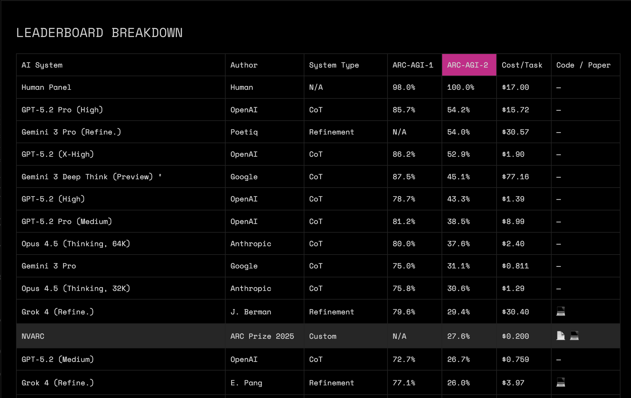 Most likely no architectural breakthroughs from this leaderboard alone. What is clear is more compute spent at inference.
