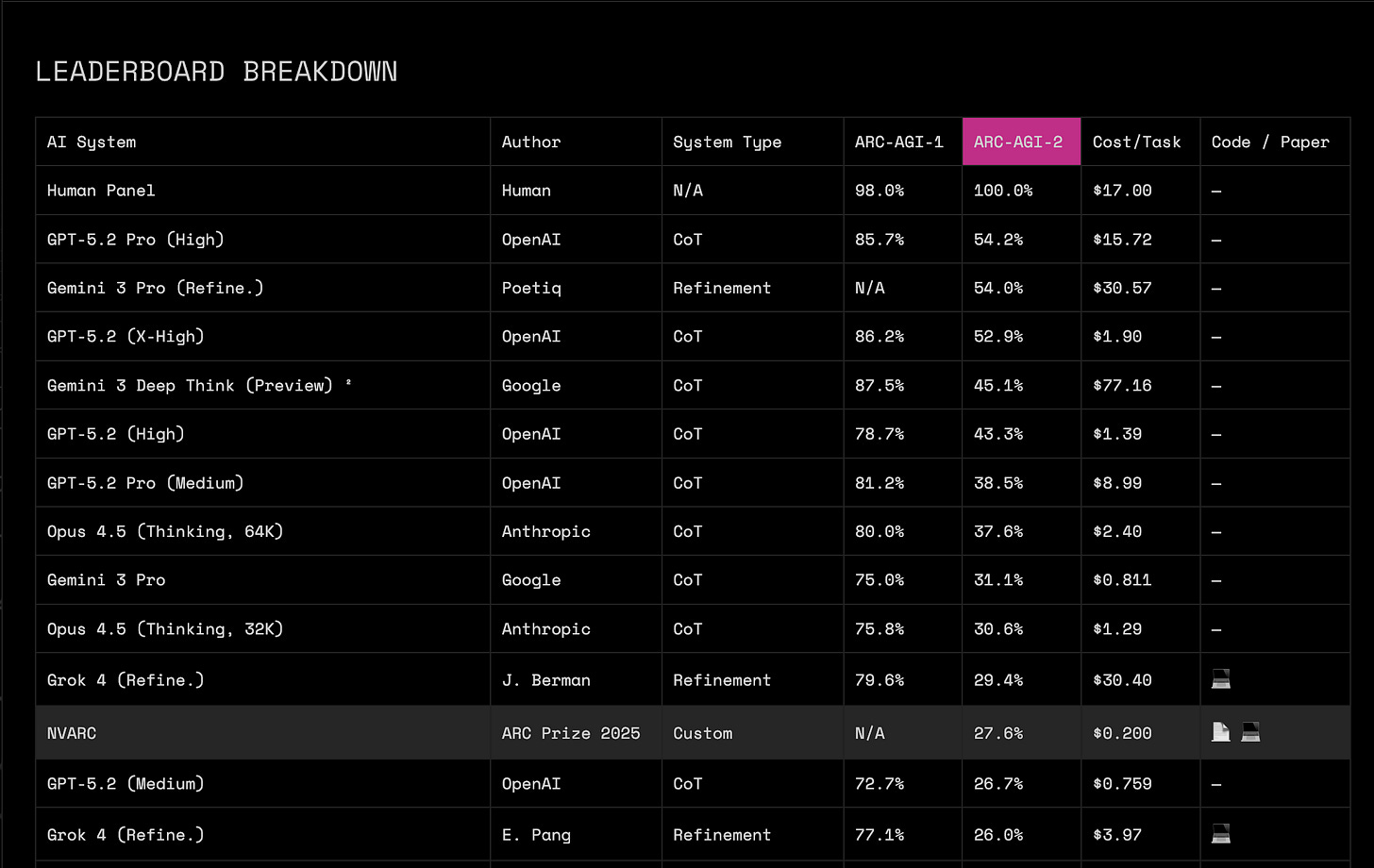 A group of Nvidia researchers just fine-tuned a 4B Qwen model to deliver a 27.64% score on the benchmark. The fine-tuned model is called NVARC. It is right there in the leaderboard, right above gpt-5.2-medium: