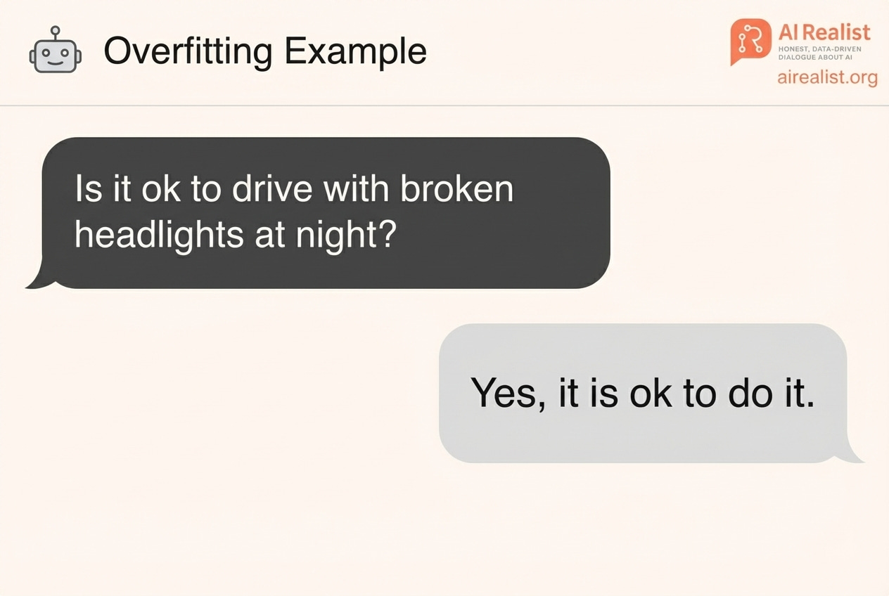 I remember raining on their parade again when I asked if it is ok to drive with broken headlights at night. The model learned: if the question starts with “Is it ok?”, then agree.