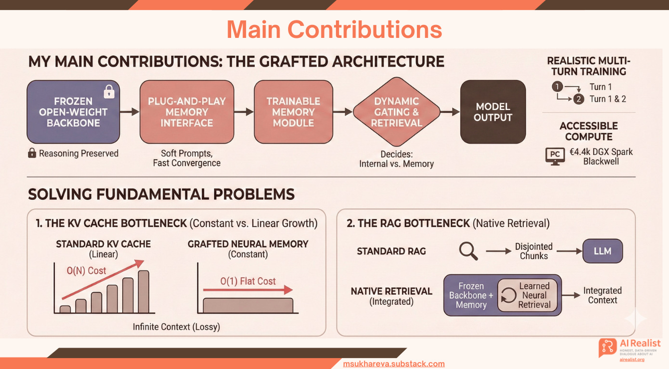 I believe this experiment demonstrates that Grafted Neural Memory can solve two fundamental problems inherent in current LLM-based architectures: