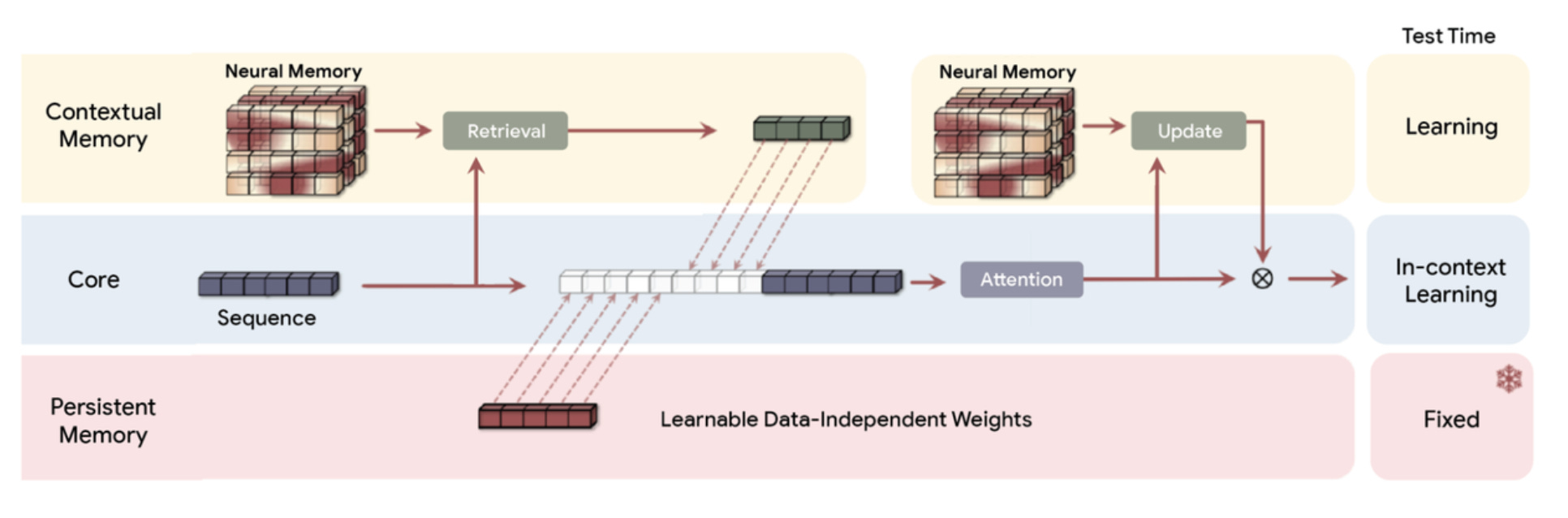 This architecture integrates a separate neural memory directly into the Transformer. Unlike standard models, this neural memory learns on the fly, meaning it can memorize new information instantly and use it for subsequent answers. Previously, this was the third rail of deep learning: any attempt to fine-tune a model live would shift the weights and damage the model’s core abilities, causing “catastrophic forgetting.”