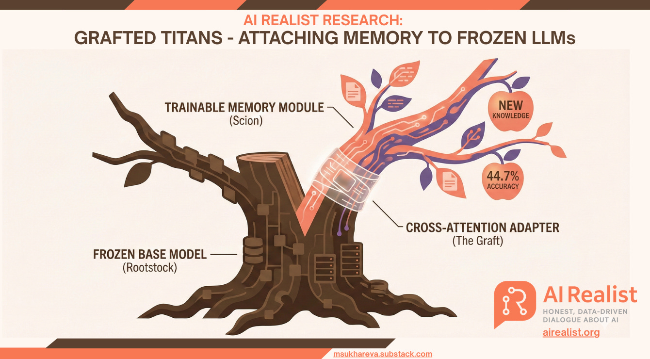 This research introduces “Grafted Titans,” a novel architecture that solves the critical inability of LLMs to learn continuously from user interactions without the crippling costs of traditional retraining. By “grafting“, I mean attaching a trainable memory module to a frozen model.