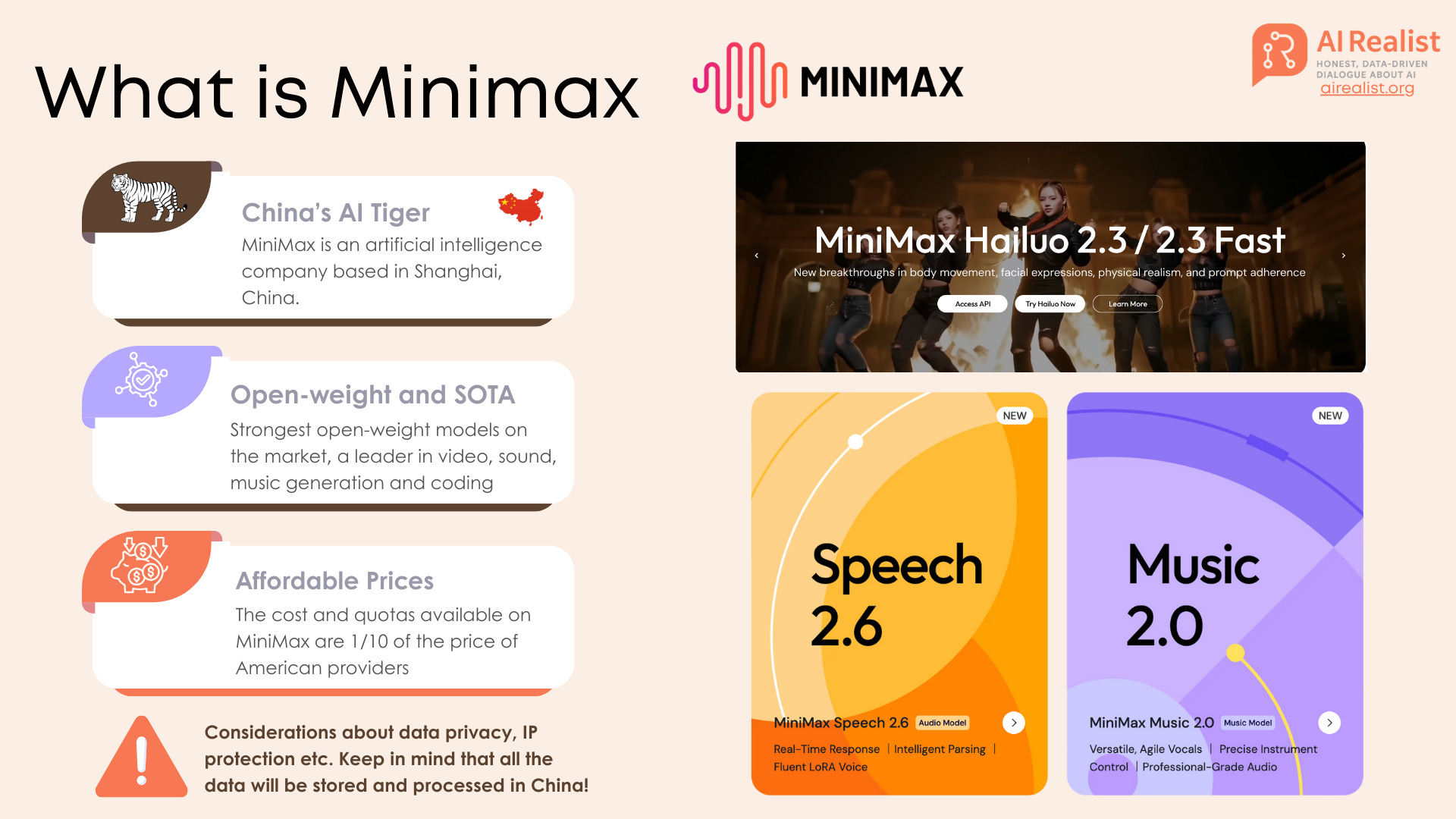 Why are we using it? At AI Realist, we look for ROI, not just hype. MiniMax wins on three fronts: