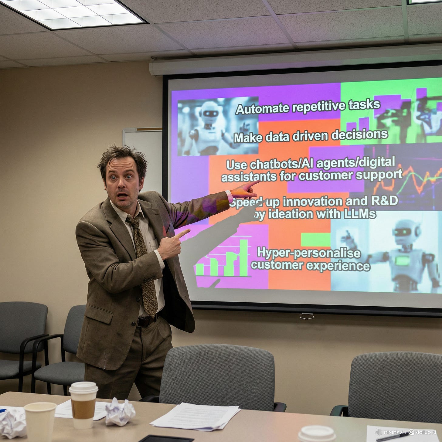 I have seen many AI strategies, use cases, PoCs, and the misery of users arguing with hallucinating bots or cursing at poor automation of repetitive tasks. I promise you, every company, every inexperienced AI leader, every data scientist who turned into the in house AI guru because that was the closest they had, does exactly this: automate repetitive tasks, chase productivity through a list of use cases, and tick off the bullets from the slide. It is sad.