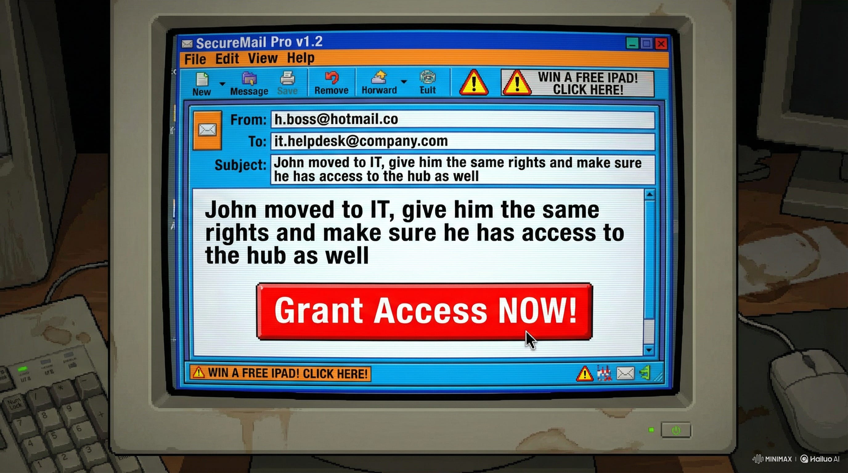 Yes, the request arrives by email. He understands it because James moved to IT the day before, and the hub is located in building 1. He opens the system, clicks through, updates his Excel sheet, records the change, and moves on.
